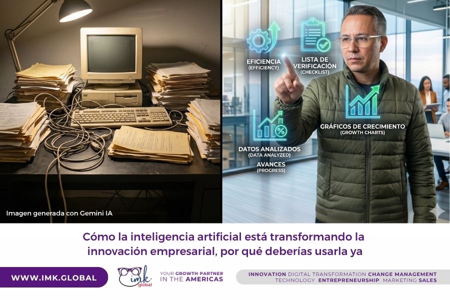 Fuente y edición: Este artículo fue elaborado a partir de la idea original sobre la transformación de la innovación empresarial mediante IA. Editado y optimizado con herramientas de IA (Gemini, NotebookLM, Claude, ChatGPT) y procesado por el equipo de Contenidos Digitales de IMKGlobal: Esperanza y Nubia Herrera. La información base es original de la temática de innovación corporativa 2025, y la optimización y adaptación es de IMKGlobal.